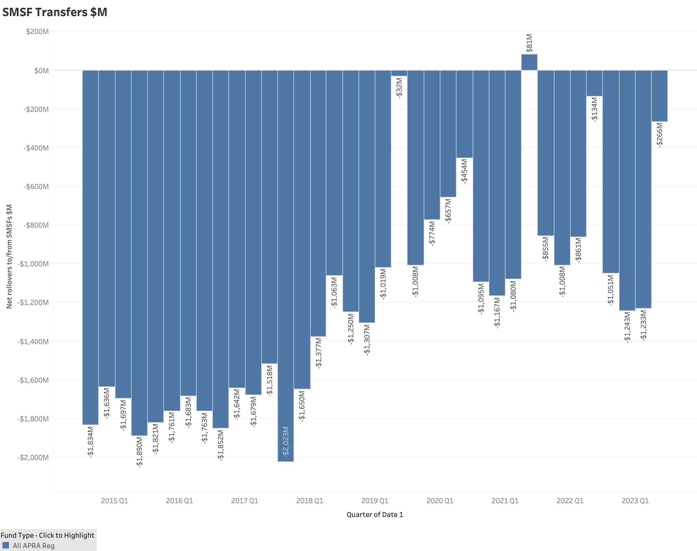 All APRA Funds Net Transfers to SMSF Funds